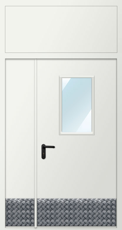 Дверь двупольная металлическая противопожарная с фрамугой изготавливается по индивидуальным размерам на нашем собственном производстве. Полотно и рама двери выполнена из металла 1,2 или 1,4 мм. Цвет двери может быть абсолютно любой по шкале RAL, используем порошковое напыление. Качественная упаковка обеспечит доставку в другой регион без рисков. Срок изготовления в среднем занимает 7 дней.