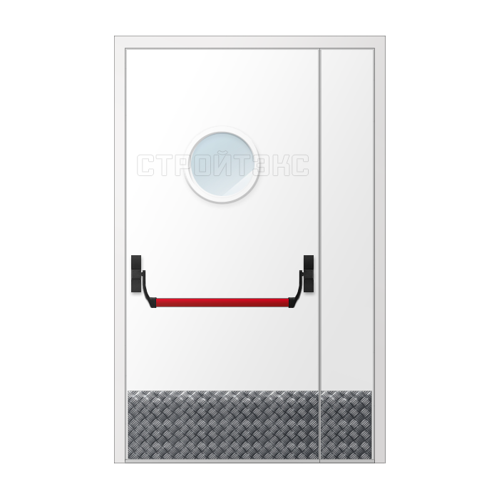 Дверь двупольная металлическая противопожарная с остеклением изготавливается по индивидуальным размерам на нашем собственном производстве. Полотно и рама двери выполнена из металла 1,2 или 1,4 мм. Цвет двери может быть абсолютно любой по шкале RAL, используем порошковое напыление. Качественная упаковка обеспечит доставку в другой регион без рисков. Срок изготовления в среднем занимает 7 дней.