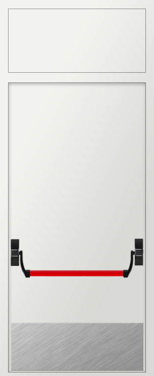 Дверь противопожарная металлическая EIS60 со скрытыми петлями, фрамугой, Антипаникой и накладкой из нержавеющей стали