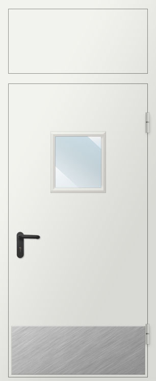 Дверь противопожарная металлическая остекленная EIS60 300х400 с фрамугой и накладкой из нержавеющей стали