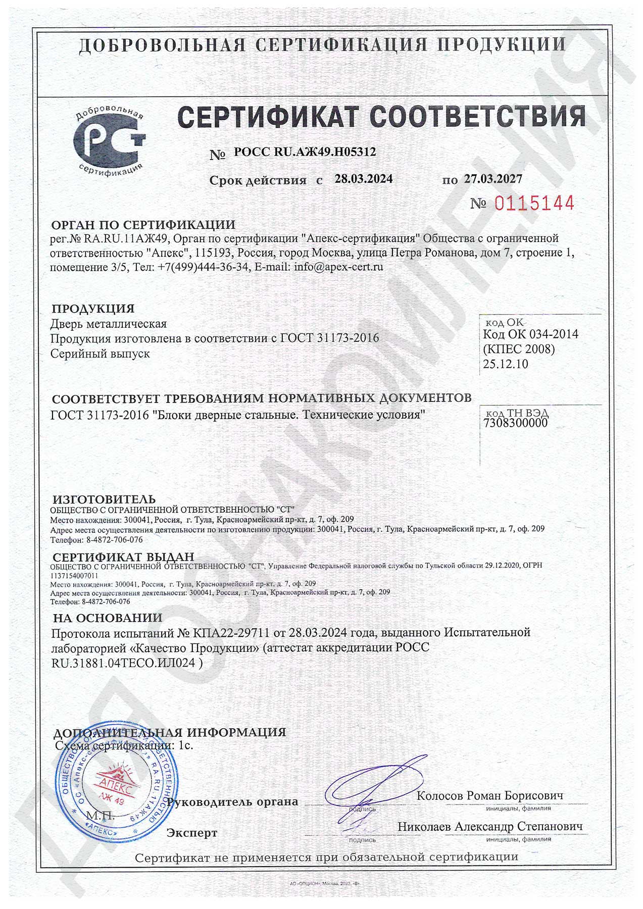 Дверь металлическая техническая