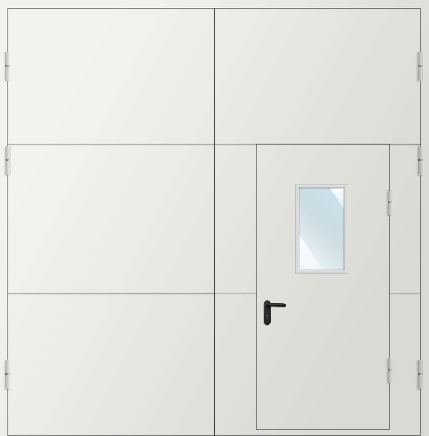 Ворота металлические противопожарные EI 60 с калиткой и остеклением